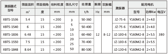 XBTS系列彈臂振動篩面傾斜安裝,角度在20°-35°之間,與其它同類型產(chǎn)品相比具有下列特點: